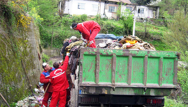 Zonguldak Belediyesi zabıta ekipleri çöp evi temizledi.