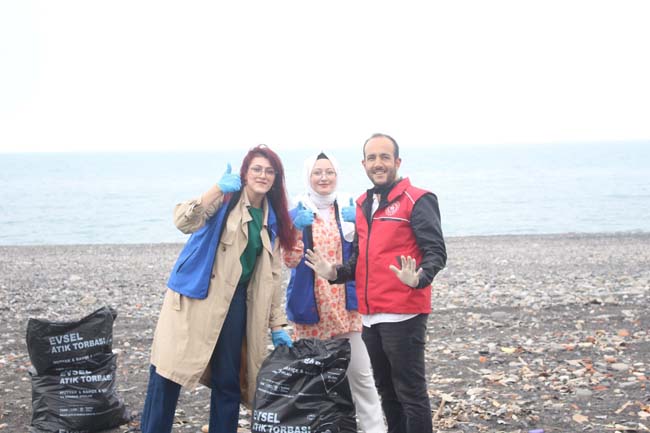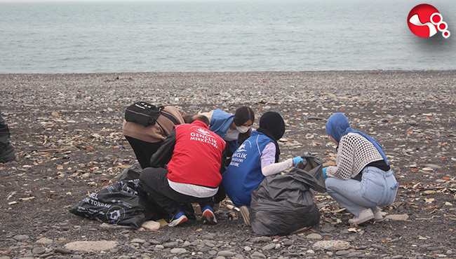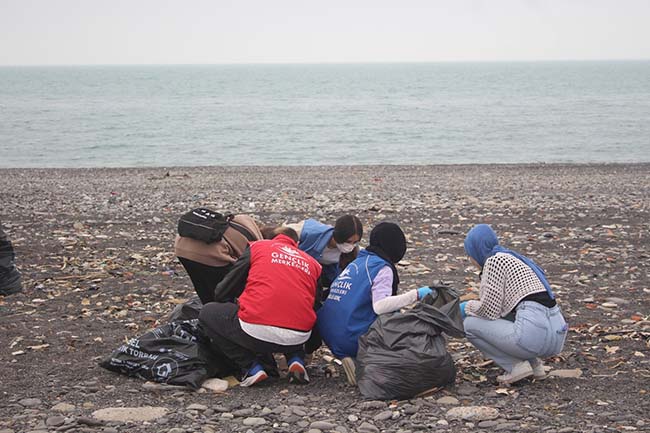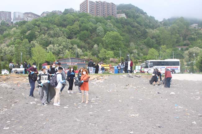 Zonguldak Bülent Ecevit Üniversitesi Yabancı Diller Yüksekokulu öğrencileri Kozlu Sahili’nde elleriyle tek tek çöp topladı.
