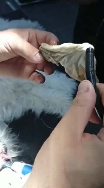 Zonguldak’ta 1 yaşındaki Puffy isimli köpeğin yuttuğu çorap endoskopiyle çıkartıldı.
