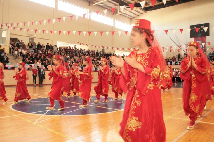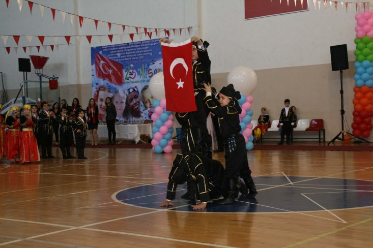 halk oyunları gösterisi yapmasının ardından, 23 Nisan konulu kompozisyon