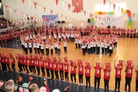 öğrenciler Türk Bayrağı'nı temsil eden bir panorama oluşturdu. Marşlar