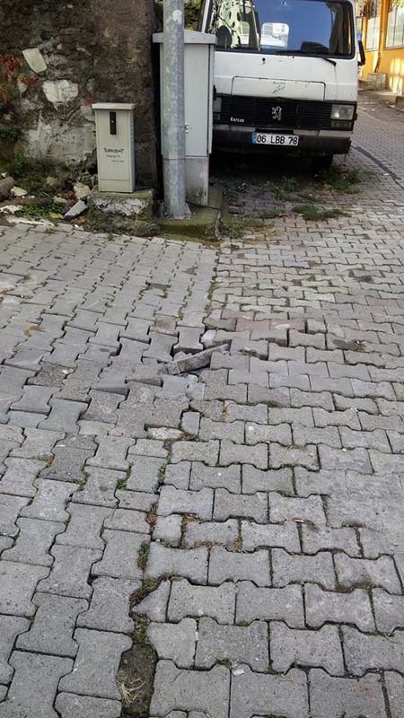 "Buradan geçen araçlar nedeniyle hattın yırtılmasından endişe ediyoruz. Belediyeyi arayarak sorunu bildirdik ama henüz bir çözüm bulunmadı. Kilit parke zeminin deformasyonu yüzünden yayalar da ayaklarının takılması ve bu suretle yaralanma riski taşıyor. Bu sorunun bir an önce çözülmesini istiyoruz"