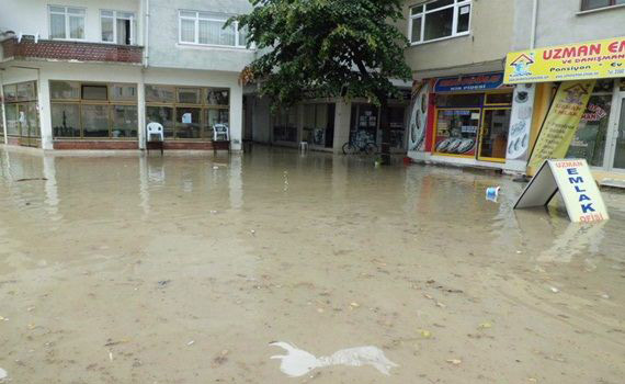 Akçakoca ilçesinde Balkanlardan gelen sert havanın etkisine girdi,ilçede etkili olan yağışlar nedeniyle, su basmaları yaşanıyor.