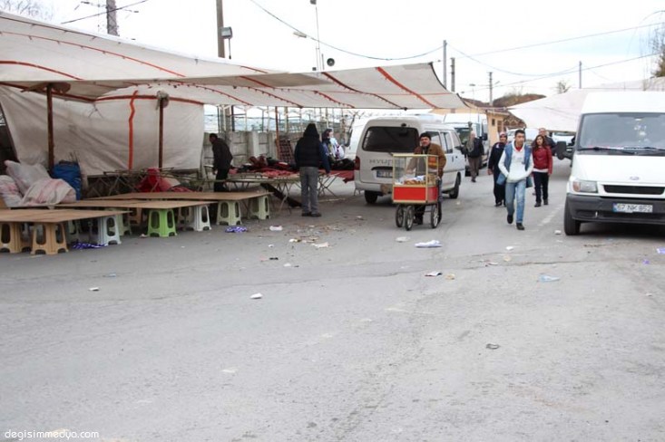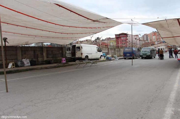 Pazar yerine gelen esnafların bir çoğuda havanın düzelme ihtimaline karşılık brandalarını açmayıp,araç içinde bekledi.