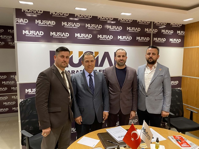 14 Mayıs 2023 tarihinde yapılacak milletvekili seçimlerinde Zonguldak’tan Ak Parti Milletvekili adayı olan Saffet Bozkurt, MHP’den Milletvekili adayı olan Murat Kotra, Büyük Birlik Partisinden Milletvekili Adayları olan Hüseyin Uysal, Özcan Özdemir ve Cihangir Yağız, Müstakil Sanayici ve İş Adamları Derneği (MÜSİAD) Karadeniz Ereğli Şubesini ziyaret ettiler.