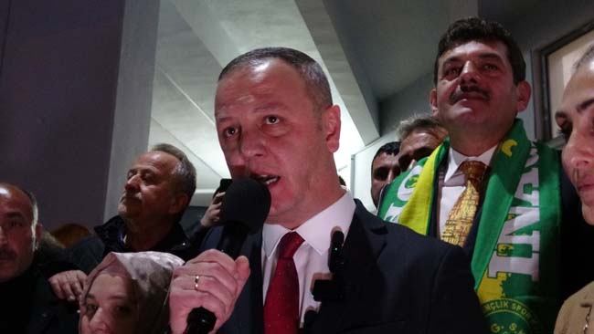 Belediye başkanı Ömer Selim Alan konuşmasını bir elini "Rabia" bir elini de "Bozkurt" işareti yaparak tamamladı.