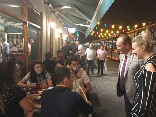 Cumhuriyet Halk Partisi Karadeniz Ereğli İlçe Başkanı Sertan Ocakcı ve Zonguldak 4. Sıra Milletvekili adayı Merve Kır, beraberindeki parti yönetici ve partililerimiz kahvelerde gece yarısı 01.30' a gençler ile birlikte oturup sohbet ettiler.
