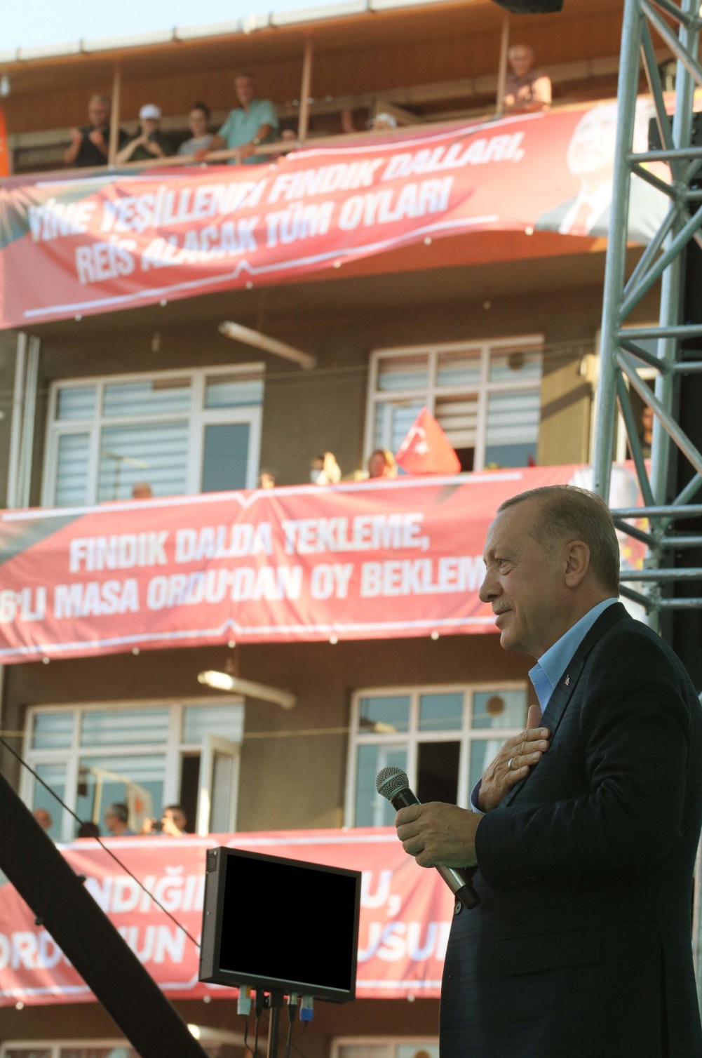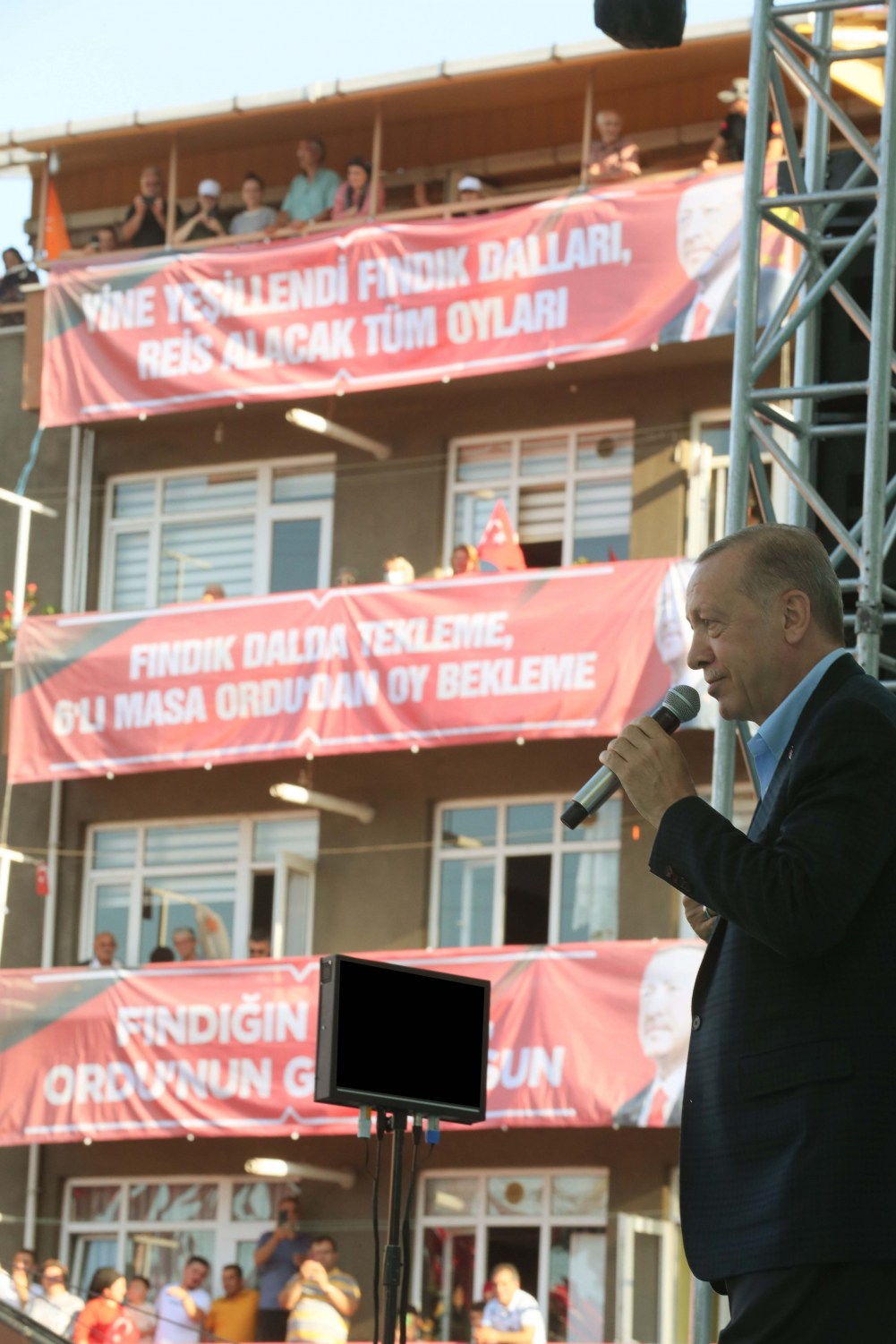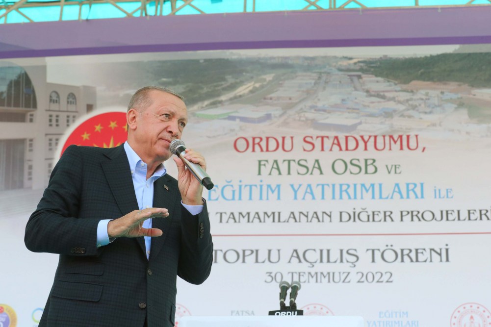 Cumhurbaşkanı Recep Tayyip Erdoğan, Ordu Cumhuriyet Meydanı’nda düzenlenen toplu açılış töreninde halka hitap etti. Meydanı hıncahınç dolduran kalabalığa seslenen Erdoğan konuşmasında, Toprak Mahsulleri Ofisi'nin (TMO) 2022 yılı fındık alım fiyatını ortalama 54 TL olarak duyurdu.