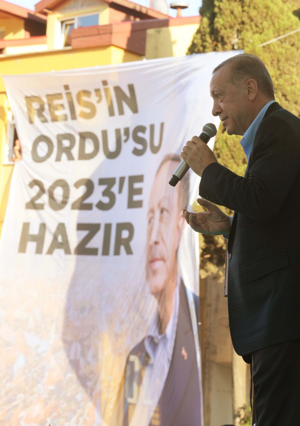 “Eskiden dünyada işler yolunda giderken biz istikrarsızlığın, güvensizliğin, kifayetsiz siyasetçilerin bedelini krizlerle öderdik. Gençler ben de sizin yanınızdayım. Üstelik bu krizler, öyle krizlerdi ki, sadece elimizdeki avucumuzdaki kaybetmekle kalmaz geleceğimizi de ipotek altına sokardık. Bugün bütün dünya krizlerin pençesinde kıvranırken biz üretimimizle doludizgin hedeflerimize doğru ilerlemeyi sürdürüyoruz. Elbette bizim de sıkıntılarımız yok değil var ama biz bunları aşabilecek güçteyiz, kapasitedeyiz. Terörle mücadelede Gabar'da, Tendürek'te, terörün belini kırdık mı? Artık terör diye bir bela var mı? Ordumuzu, diplomasimizi, medyamızı kontrol altında tutarak, bizi dört bir yandan kuşatarak adeta esir almışlardı. Rahmetli Erbakan ve Türkeş'in verdiği mücadele bir istikbal mücadelesiydi. Biz de bu büyük davanın son temsilcisi olarak 21 yıl önce sizlerin huzurunuza geldik. Türkiye'yi siyasi ve ekonomik olarak ayaklarındaki prangalardan kurtarınca gördük ki 20 yılda asırlık işler yapmak mümkünmüş. Bu ülkenin uluslararası itibarını, her alanda 20 yılda zirveye çıkarmak mümkünmüş. Biz tüm bunları nasıl başardıysak, inşallah bugünkü sıkıntıları da çözeceğiz, bundan sonraki atılımları da gerçekleştireceğiz. Şu anda ben bu karşımdaki muhteşem katılımı görünce Elhamdülillah diyorum. Demek ki çay demlendi. Çay demlendi belli. Güzel bir pankart gördüm: Fındık dalda tekleme, 6'lı masa Ordu'dan oy bekleme” diye konuştu.