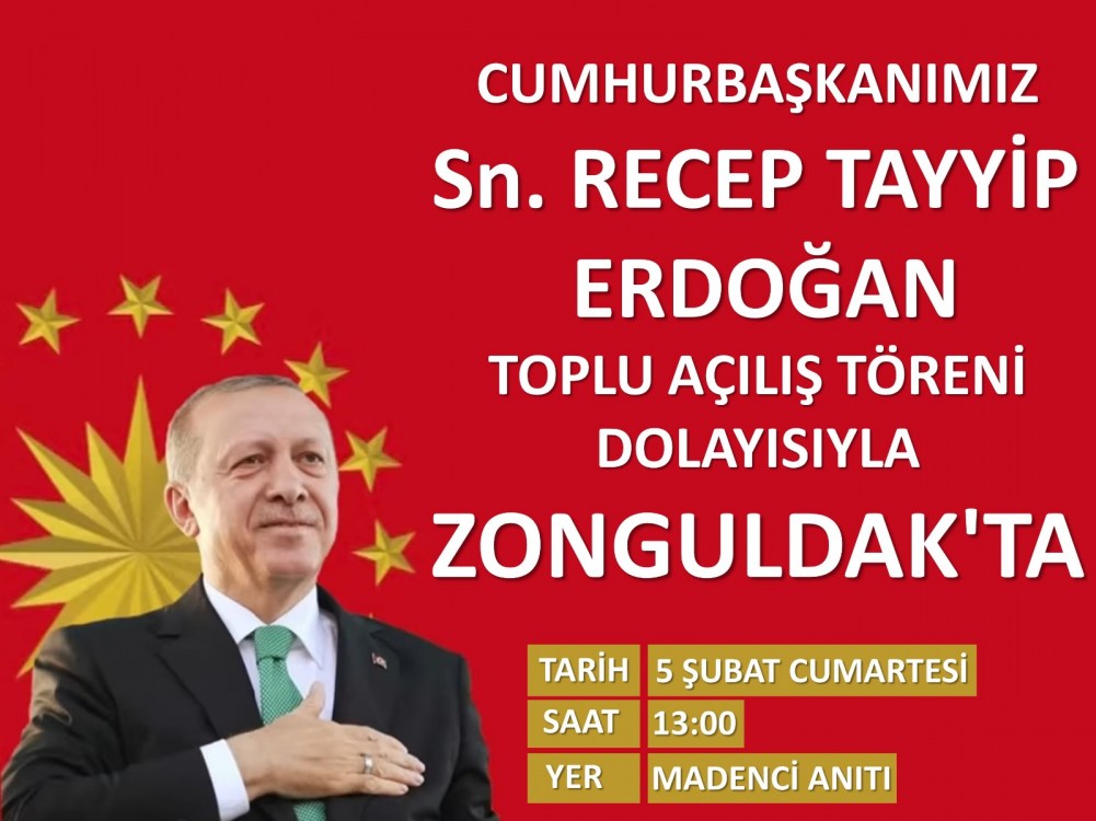 Öte yandan AK Parti İl Başkanı Zeki Tosun da sosyal medya hesabından yaptığı paylaşımla Cumhurbaşkanı Recep Tayip Erdoğan'ın 5 Şubat Cumartesi günü Zonguldak'ta madenci anıtında Zonguldak halkına hitap edeceğini açıkladı.