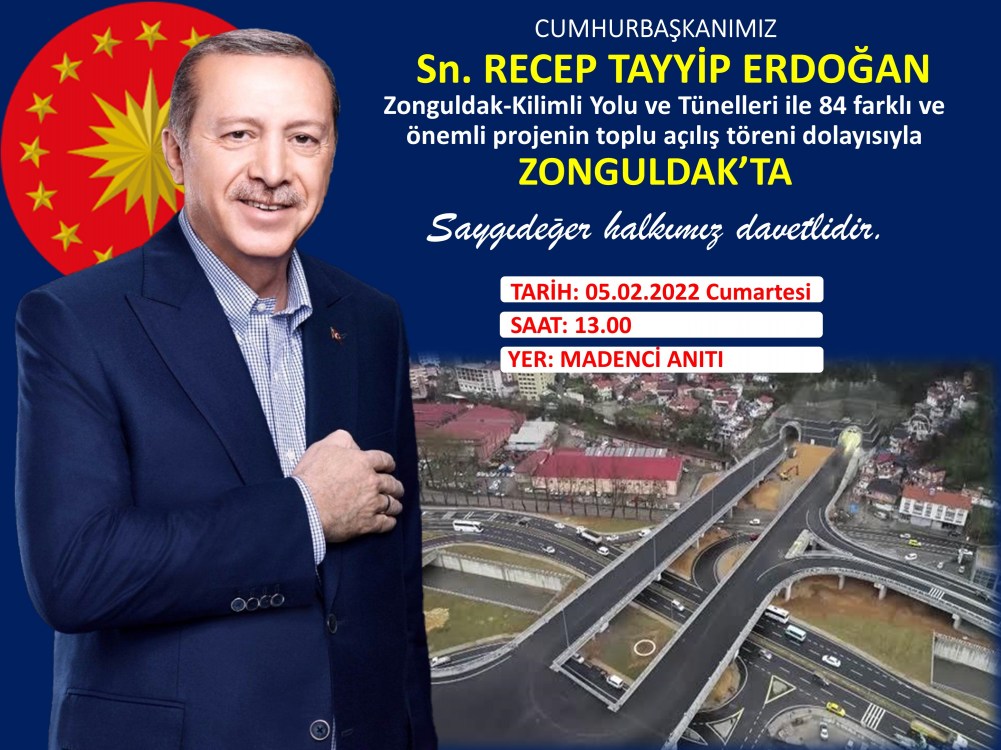 Cumhurbaşkanı Recep Tayyip Erdoğan 5 Şubat Cumartesi günü Zonguldak’a gelerek Zonguldak-Kilimli Yolu ve Prof. Dr. Teoman Duralı Tünelleri’nin açılışını yapacak, saat: 13:00'da madenci anıtında halka hitap edecek.