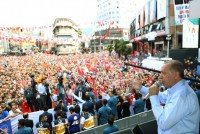 Zonguldak'a TTK'dan Hazine'ye devredilen 150 dönümlük araziyi Millet Bahçesi'ne dönüştüreceklerini vurgulayan Erdoğan, "Bugün gelirken elimiz boş gelmedik. Ülkemizin farklı bölgelerine millet bahçeleri kazandırıyoruz. Burada neresi uygun? Cami yapıyoruz ya. Camiyi bizzat takip ediyorum. Muhteşem bir cami yapılıyor. Caminin hemen yanı başında TTK'ya hazineye devredilmiş 150 dönümlük arazi var. Orayı millet bahçesine dönüştüreceğiz. Denizin kenarında böyle bir millet bahçesi. Alacaksınız çocukları yanınıza, çocuklarla beraber yatın yuvarlanın. Bunun tadına doyum olur mu? Bizim de Zonguldak'ta millet bahçemiz var. Biz bugüne kadar hep ülkemiz ve geleceğimiz için çalıştık. 16 yılda ülkeyi tarihinin en büyük hizmetleriyle buluşturduk. Karşılaştığımız tüm badireleri de sizlerin desteği ile aştık. Kurulan tuzakları sizlerin tuzakları ile aştık. 3-5 günlük menfaat için birilerine peşkeş çekmedik. Kalbi milletiyle bir çarpan milletiyle aynı yürüyen hiçbir siyasetçiyi yolundan saptıramaz. 15 Temmuz'da saptırdı mı? Sizlere bir çağrı yaptık. Hepiniz meydanlara döküldünüz. Siz F-16'ların karşısında dik durdunuz. O korkaklar var ya korkalar, Pensilvanya'da var ya. Onun yanından gidenler var ya. Onlar zafer anıtı dikemez. Zafer anıtını millet diker. 16 yıldır hep 'Bize Allah, bize millet yeter' dedik. Önümüzdeki dönem için de aynı şeyleri söylüyoruz. Zorlu yolculuğumuzda bize millet yeter, bize Zonguldak yeter" diye ifade etti.