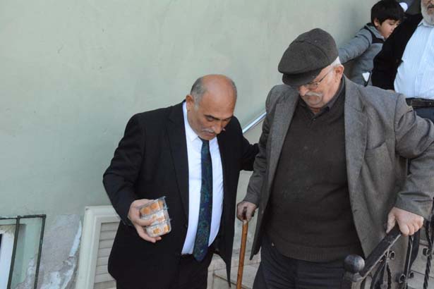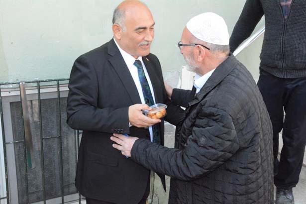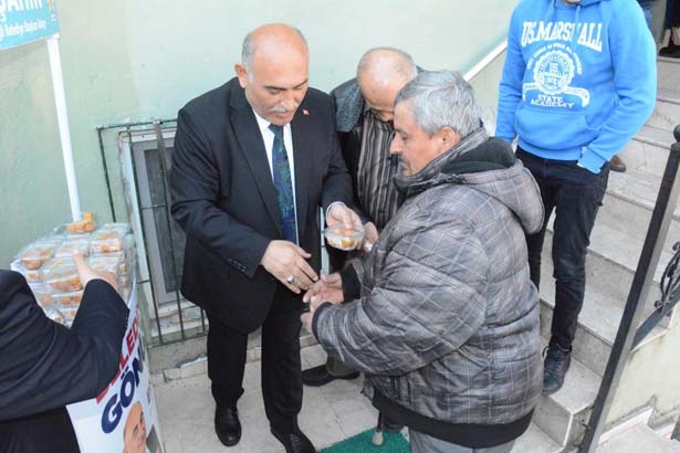 dağıtımı yapan AK Parti Ereğli Belediye Başkanı Erol Şahin, cami çıkışında