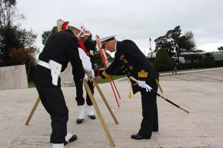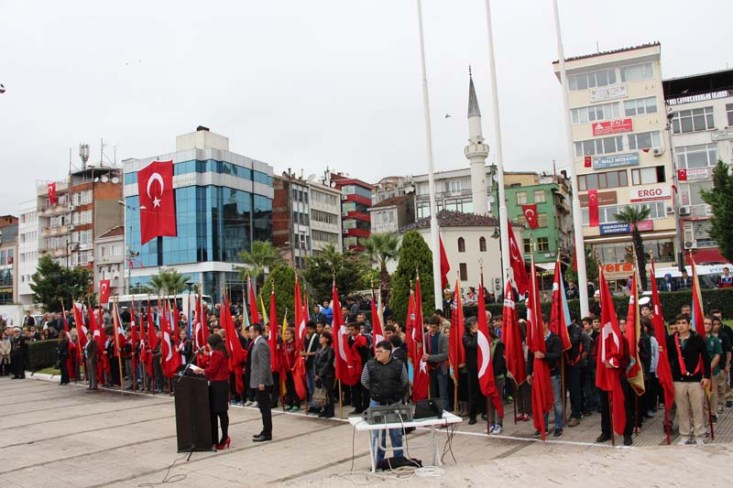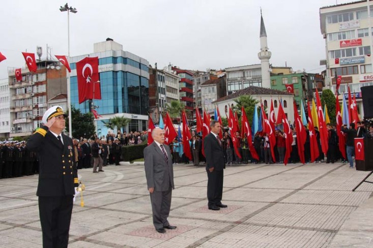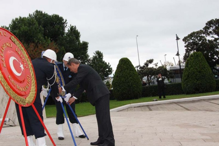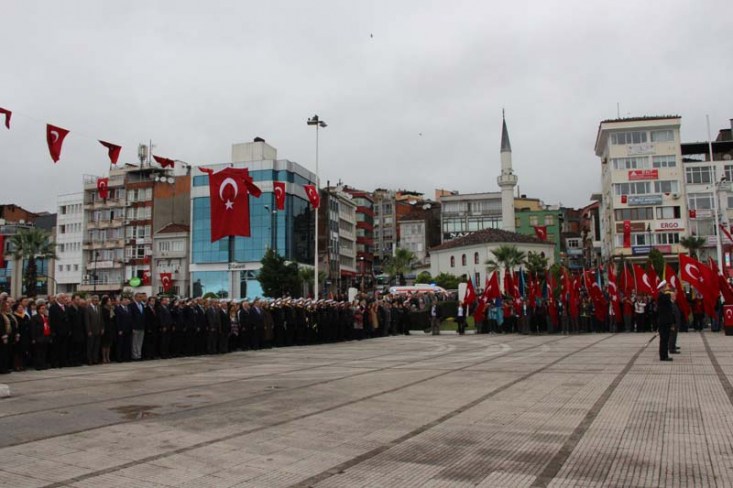Tören öncesinde protokol üyeleri başta olmak üzere siyasi parti yetkilileri, sivil toplum kuruluşları, daire müdürleri ve çalışanlar başta olmak üzere vatandaşlar yerlerini aldı. Törende sırasıyla Kaymakamlık, Karadeniz Bölge ve Garnizon Komutanlığı ile Karadeniz Ereğli Belediye Başkanlığı çelenkleri anıta kondu. Saygı duruşu ve İstiklal Marşı'nın okunmasının ardından resmi tören sona erdi.