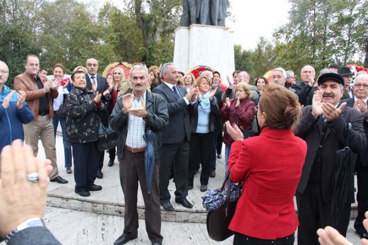 Ardından Cumhuriyet Halk Partisi İlçe Başkanı Hayrettin Kartal ve beraberindekiler anıt önünde alternatif çelenk töreni düzenledi. Alkışlarla anıta partinin çelengini koyan Cumhuriyet Halk Partisi İlçe Başkanı Hayrettin Kartal, Cumhuriyet'i ve Atatürk'ü unutturmayacaklarını ve unutturmak isteyenlerin de her zaman karşısında olacaklarını söyledi.