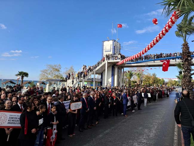 Program, Hatice Erdem Denizcilik Meslek ve Teknik Anadolu Lisesi Bando Takımı işleğinde; Gaziler, İlçedeki Devlet ve özel olmak üzere orta okul, lise ve dengi okulların idarecileri, öğretmenleri ve birer grup öğrencileri, Türkiye Taş Kömürü Kurumu, Ereğli Demir ve Çelik Fabrikaları, çeşitli kurum ve kuruluşları temsilen gruplar ve bazı spor dallarındaki sporcu ile öğrenciler, Askeri, belediye ve bazı kurum araçlarının geçit töreni ile tamamlandı.