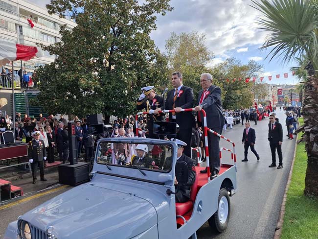 Karadeniz Ereğli kaymakamı Fatih Yılmaz’ın makamında tebrikleri kabulü ardından İlçenin Atatürk Bulvarı’nda gerçekleştirilen tören, Kaymakam Yılmaz’ın askeri araç üzerinden halkı selamlaması sonrası saygı duruşunda bulunulup, İstiklal Marşı’nın okunmasıyla başladı.