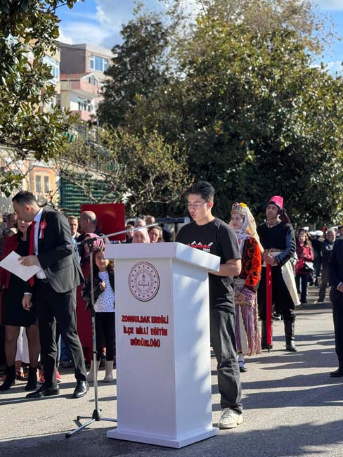 Devrim Bulvarı Sahil taksi önünden başlayan bayram törenine; Kdz. Ereğli Kaymakamı Fatih Yılmaz, Kdz. Ereğli Belediye Başkanı Halil Posbıyık, Zonguldak Milletvekilleri Saffet Bozkurt ve Eylem Ertuğrul, Karadeniz Bölge ve Garnizon Komutanı Tuğa. Yücel Korkut, Kdz. Ereğli Cumhuriyet Başsavcısı Mustafa Erbaş, Kdz. Ereğli İlçe Emniyet Müdürü Hasan Ünlü, Kdz. Ereğli İlçe Jandarma Komutanı Emrah Dinar, Kdz. Ereğli İlçe Millî Eğitim Müdürü Harun Akgül, kurum amirleri, öğretmenler, öğrenciler ve çok sayıda vatandaşlar katıldı.