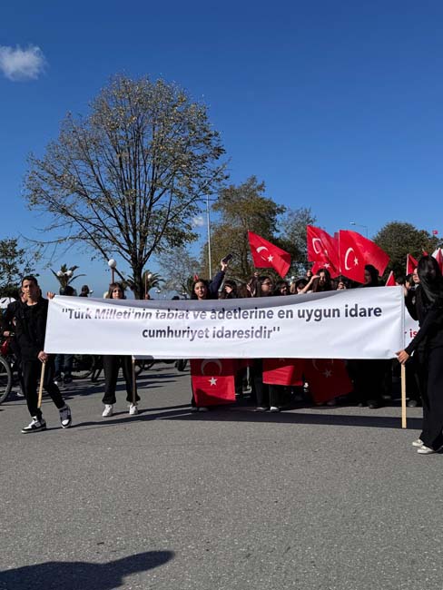 Kortej boyunca vatandaşlar, yürüyüşe katılan öğrencilere ve kurum temsilcilerine alkışlarla destek verdi. Etkinlik alanında sahnelenen birbirinden etkileyici gösteriler izleyenlere duygusal anlar yaşattı. Cumhuriyet’in değerlerine yürekten bağlı öğretmenler, öğrenciler ve tüm emeği geçenler bu özel günde göğsü dik, gururla yerlerini aldı.