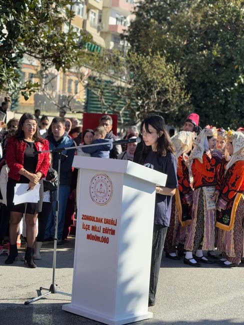 Okullarda düzenlenen yarışmalarda birincilik elde eden öğrencilerin şiir ve kompozisyonlarını okuduğun törende, Karadeniz Ereğli Belediyesi Halk Oyunları ekiplerince, çeşitli yörelere ait halk oyunları gösterisi gerçekleştirildi.