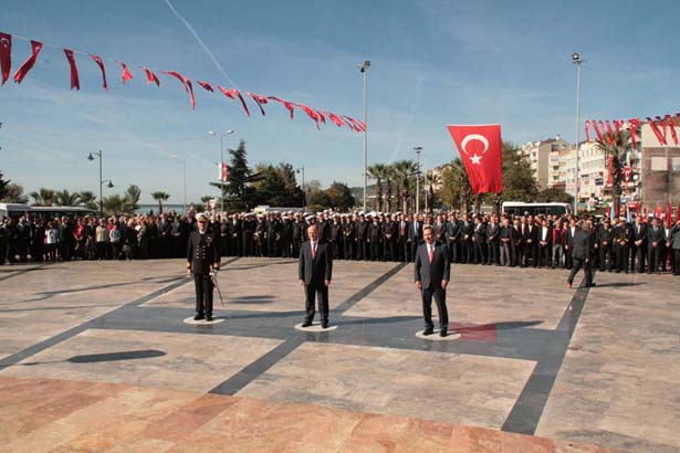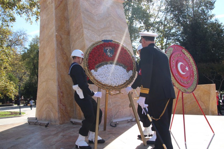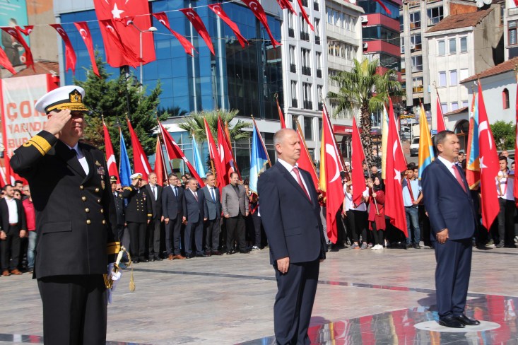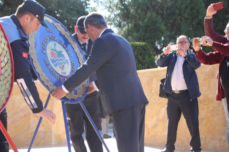 Atatürk Anıtı önünde düzenlenen törende Karadeniz Ereğli Kaymakamı İsmail Çorumluoğlu, Karadeniz Bölge ve Garnizon Komutanı Tuğamiral Özden Yazıcıoğlu ve Karadeniz Ereğli Belediye Başkanı Hüseyin Uysal anıta çelenk sundu.