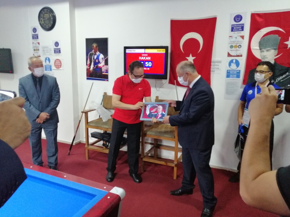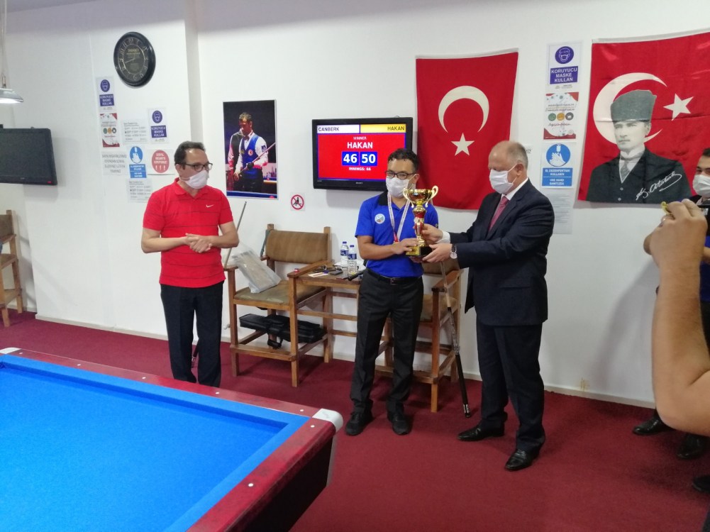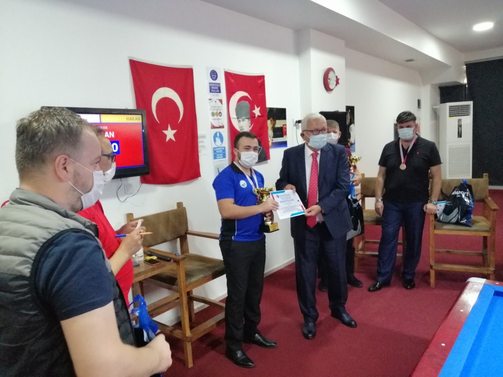 Müftü Mahallesi Cumartesi (Üretici) Pazarı mevkiindeki Üstün Bilardo Spor Salonu’nda 32 sporcunun katılımı ile başlayan turnuvanın final karşılaşması, Hakan Karaorman ile Canberk Çömeten arasında oynandı,
