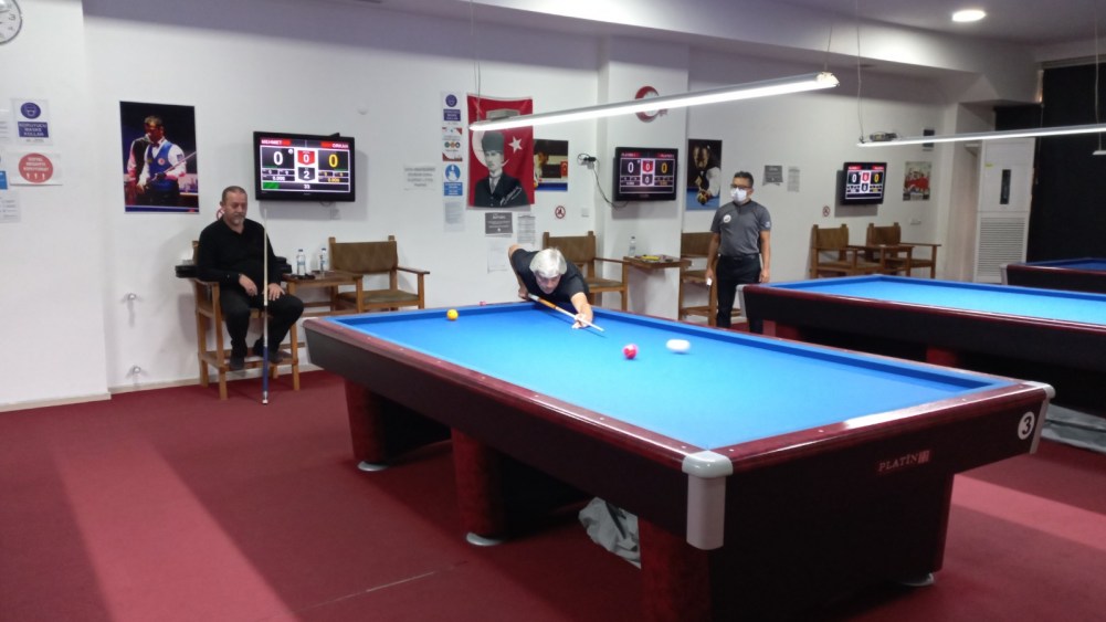 Türkiye Bilardo Federasyonu Resmi Hakemi Hakan Karaorman’ın yönettiği karşılaşmanın İlk devresi, Basmaz’ın, Göktekin’e 20-17 üstünlüğü ile geçildi.