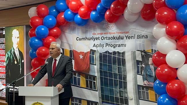 Kdz. Ereğli’de eğitim camiası, Cumhuriyet Ortaokulu’nun yeni bina açılışıyla tarihi bir güne tanıklık etti.
