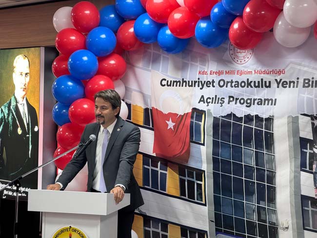 Ardından kürsüye çıkan Zonguldak Milletvekili Saffet BOZKURT, yeni dönemde eğitim yatırımlarının hız kazandığını ifade eden Bozkurt, Ereğli için büyük öneme sahip Cumhuriyet Ortaokulu’nun yeniden kazandırılmasının ilçe eğitimine ciddi katkılar sunacağını kaydetti. Ayrıca, 3 Aralık Dünya Engelliler Günü’nde Cumhurbaşkanımız Sayın Recep Tayyip Erdoğan’ın eşi Emine Erdoğan’ın katılımıyla özel eğitim kampüsünün açılışının yapılacağını duyurarak eğitime verilen önemin altını çizdi.