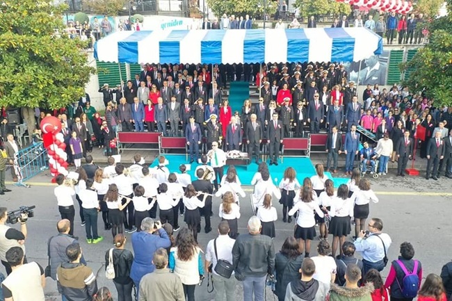Ardından bando eşliğinde saygı duruşu ve İstiklal Marşı okundu.