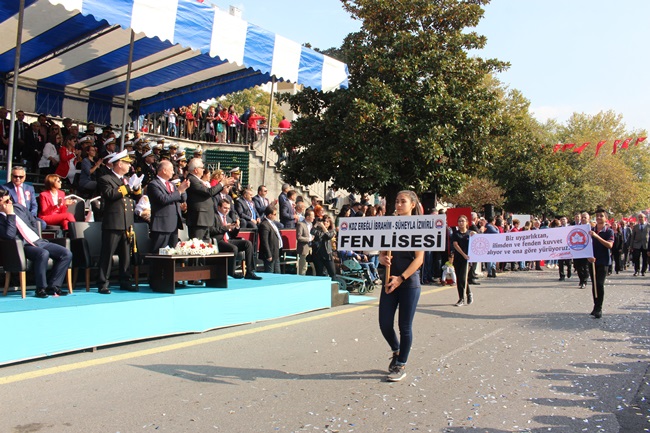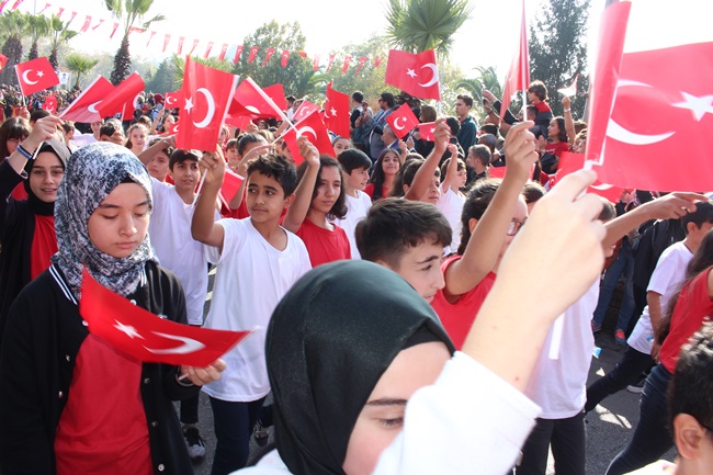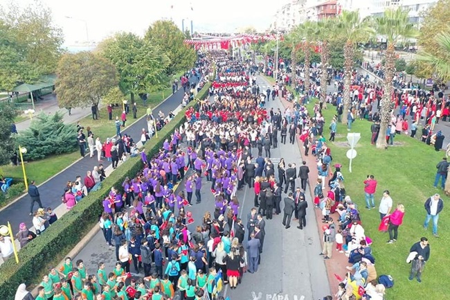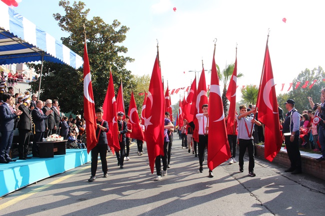 Kutlama programı çerçevesinde, katılımcı gruplar tarafından tören geçişi bulvarı dolduran binlerce vatandaşın alkışları arasında gerçekleştirildi. Tören Geçişi programının önceki yıllardaki kutlamalara göre çok daha büyük bir katılımla gerçekleştiği dikkatlerden kaçmadı. Töreni izleyen vatandaşların sayısının da önceki yıllara kıyasla çok daha fazla olduğu gözlendi.