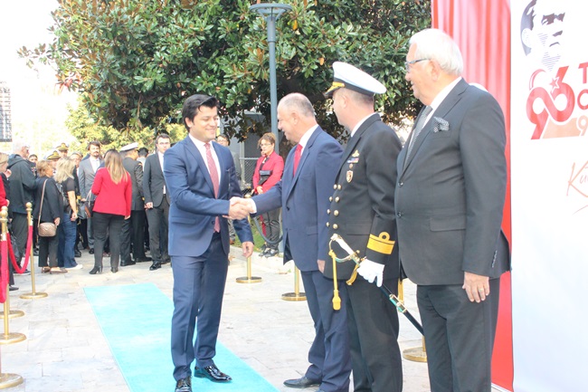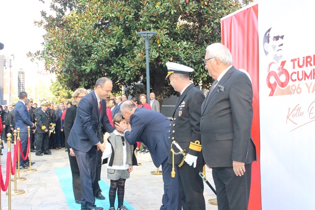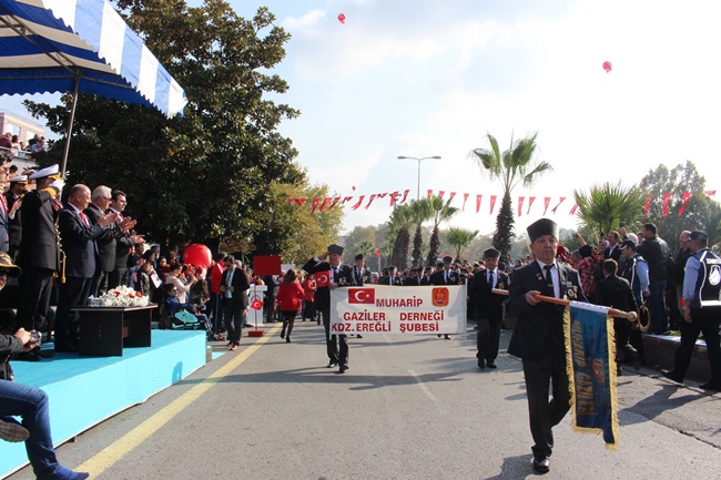 8 Ekim Pazartesi günü düzenlenen çelenk sunma töreninin ardından 29 Ekim Salı günü sabah saat 10.30’da Karadeniz Ereğli Kaymakamı İsmail Çorumluoğlu, Karadeniz Bölge Komutanı Tuğamiral Hüseyin Sami Uyar ve Belediye Başkanı Halil Posbıyık Atatürk anıtı arka kısmında bulunan İnönü parkında kurulu platform önünde tebrikleri kabul ettiler.