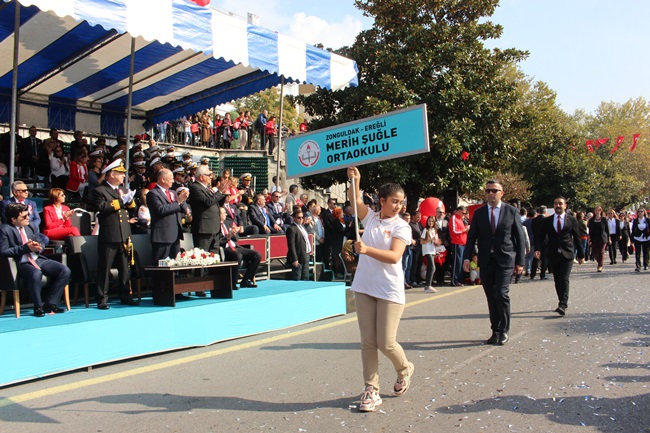 Karadeniz Ereğli Kaymakamı İsmail Çorumluoğlu, Belediye Başkanı Halil Posbıyık ve Garnizon Komutanı Tuğamiral Hüseyin Sami Uyar öncelikli olarak halkın ve öğrencilerin 29 Ekim Cumhuriyet Bayramını kutlamadı.