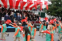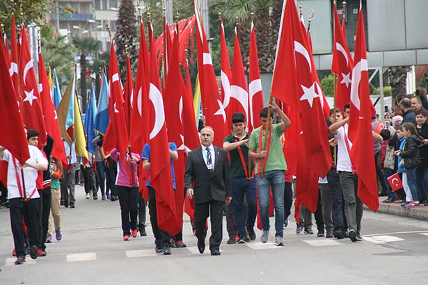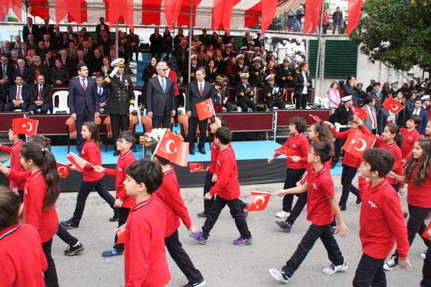 Tören geçişine vatandaşlar ve öğrenciler Türk Bayrakları ile eşlik etti.