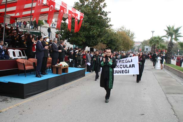 Tören; Özel Utku Anadolu Lisesi Armoni Bandosu eşliğinde okulların, ilçedeki şehit ve gazi dernekleri ile çeşitli sivil toplum örgütlerinin ve askeri birliklerin geçidi ile sona erdi. Bu sene Ereğli Hukukçular Derneği üyesi Avukatlar da tören geçişine katıldı.