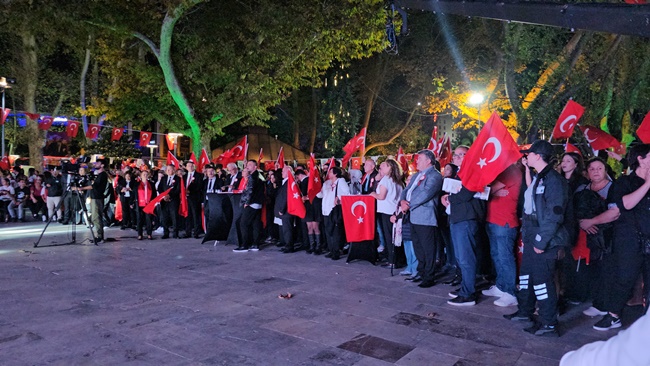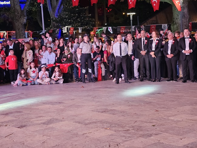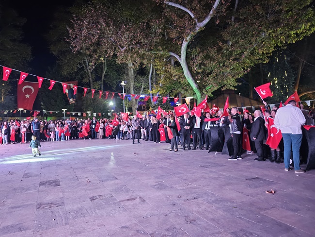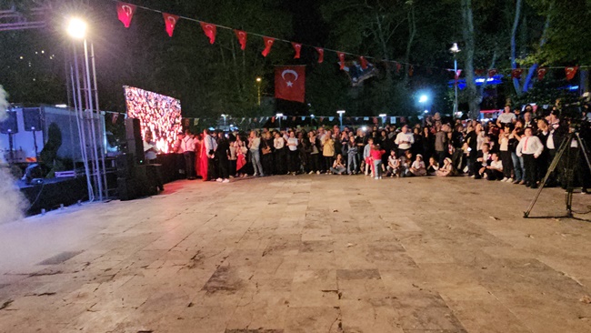 Cumhuriyet Halk Balosu’nda Ereğlililer omuz omuza türk bayrağını dalgalandırdı, marşları, şarkıları hep bir ağızdan söyledi. Gecede Nur Yoldaş ve Kartal Kaan, birbirinden güzel şarkılarıyla katılımcılara unutulmaz bir gece yaşattı. Pelin Bölükbaş ve Soyutürk’te şarkılara eşlik etti.