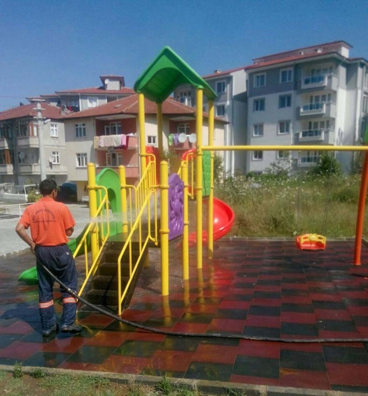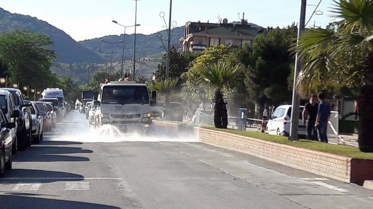 Bizim işimiz şehri her zaman temiz tutmak. Bu bağlamda cadde ve sokakların yanında otobüs duraklarını, çocuk parklarını dahi yıkıyoruz. Sahil kesiminde 24 saatlik bir çalışma var. Süpürge aracımızda sürekli bu bölgede çalışıyor." dedi.