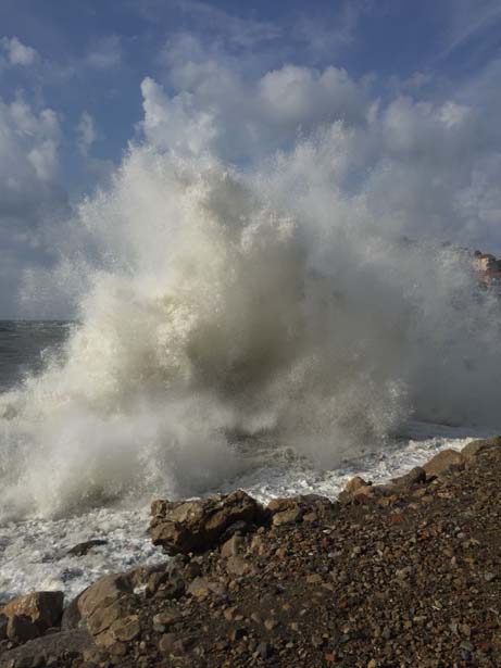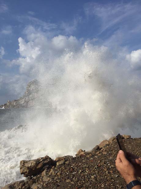 Küçük Liman'da kayalara çarpan dalgaların boyu 5 metreyi buldu. Limanda yüksek