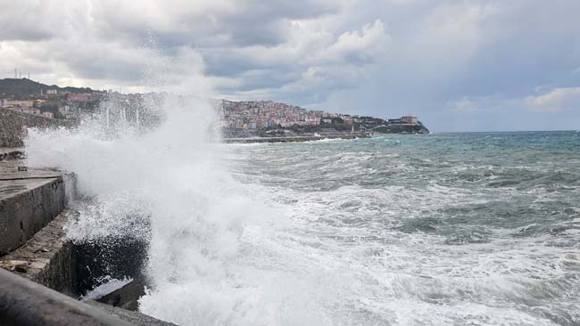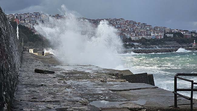 Sahil bandına vuran ve boyu zaman zaman 7 metreye ulaşan dalgalar, duvarı aşarak liman içine girdi. Bazı balıkçı tekneleri ise şiddetli rüzgar nedeniyle limana demirledi.