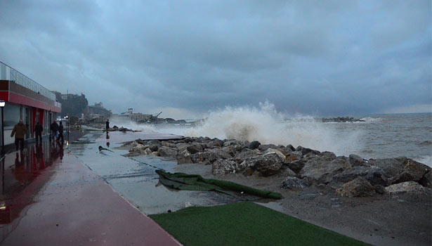 peşe gelen dalgalar sahil bandını dövdü. Deniz suyu ise dalga kıran kayalara
