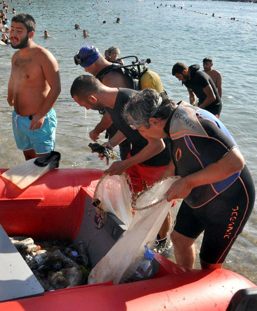 6 kişilik ekip tüplerle dalış yaparak, deniz içerisindeki atıkları topladılar. Dalgıçlar denizin altından çıkardıkları atıkları yanlarına aldıkları çuvallara biriktirip sahile çıkardılar. Yaklaşık 1 saat süren çalışmada denizden yüzlerce alkol şişesi, pet şişe ve otomobilin motor aksamında kullanılan bir parça çıktı. Çalışmaların belli aralıklarla devam edeceği belirtildi.
