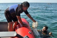 Plajda görevli cankurtaranlar ve dalgıçların yanı sıra Zonguldak Belediyesi Kapuz Plajı Müdürü Abdullah Bakır da temizlik çalışmalarına destek verdi.