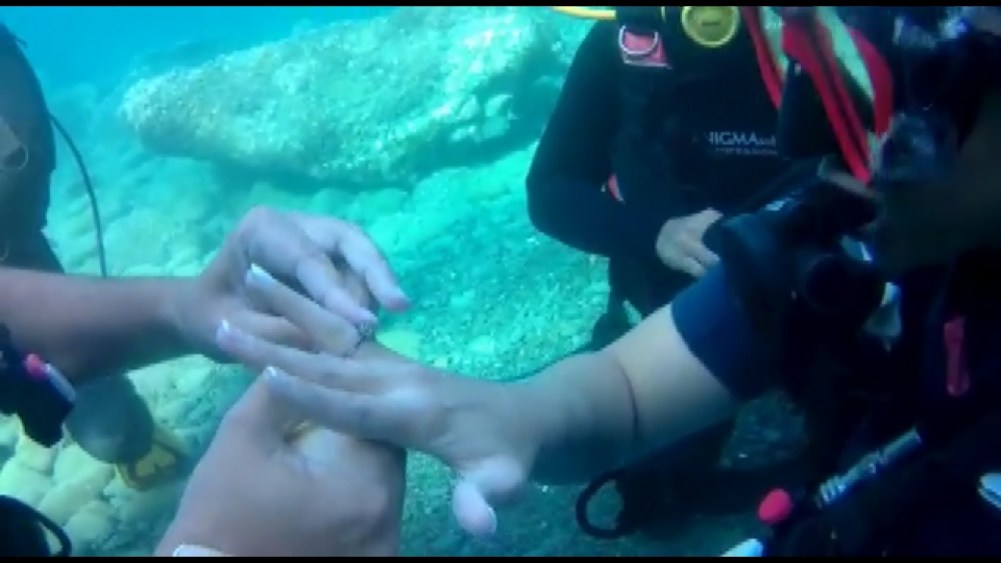 Ereğli Demir ve Çelik Fabrikalarında çalışan 38 yaşındaki Ender Ozan Albayrak, İstanbul’da muhasebeci olarak çalışan ve ortak arkadaşları sayesinde tanıştığı Kübra Özkan’a (26) evlilik teklifini deniz altında yaptı. Kız arkadaşının denizi çok sevmesinden dolayı böyle bir kara alan Albayrak, teklifini Çanakkale İli Gökçeada’ya düzenlenen gezide yapmaya karar verdi.