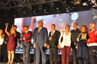 Geceye eşi Sevim Uysal ile birlikte katılan ve ödül töreninde teşekkür plaketini almak üzere sahneye davet edilen Kdz.Ereğli Belediye Başkanı Hüseyin Uysal, burada katılımcılara da hitap etti.