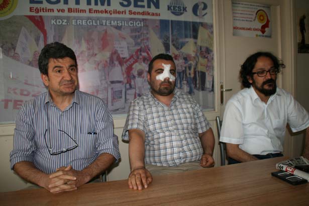 Eğitim Sen Ereğli İlçe Temsilcisi İbrahim Koç, Kepez İzmirlioğlu Ortaokulunda görev yapan Volkan Sağan'ın bir otomobil sürücüsünün saldırısına uğradığını, darp edildiğini, bunun sonucunda 10 günlük iş göremezlik raporu verildiğini ifade ederek şunları söyledi: