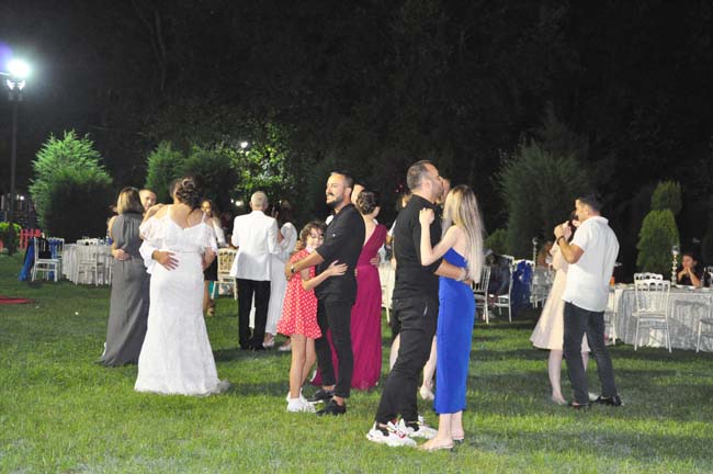 Beyazıd’ın, düğün alanına beyaz atla gelerek davetlileri selamlamasıyla başlayan düğün töreninde ilk dansı Beyazıd annesi Gamze Dinçel ile yaptı. Ardından davetliler orkestra eşliğinde doyasıya eğlendi.