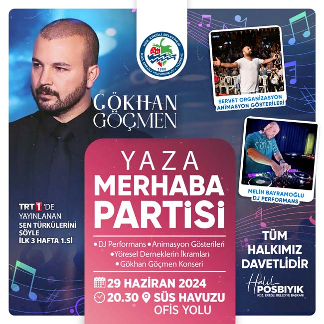 Kdz. Ereğli Belediyesi, yaz ayı etkinliklerine milli maç canlı yayını, sinema günleri, piyano etkinliğinden sonra Yaza Merhaba Partisi ile devam ediyor.