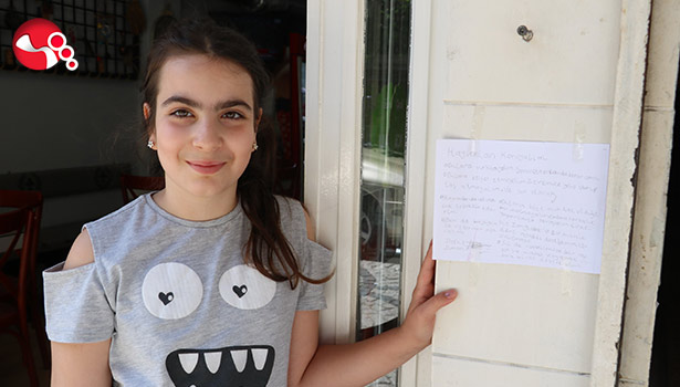 Zonguldak'ta 10 yaşındaki hayvansever Defne Duman, sokak hayvanlarına sahip çıkmak amacıyla kendi hazırladığı notları sokaklara asıyor.