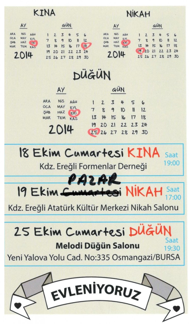 Ekim Pazar günü saat 17.00'de Atatürk Kültür Merkezi Nikah Salonunda nikah merasimi ve 25