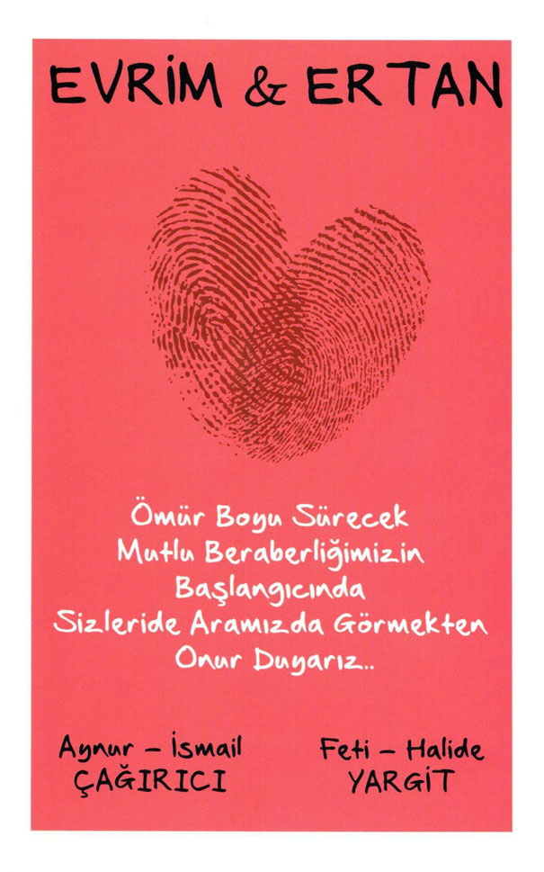 EVLİLİKLERİNDE İKİ GİRİŞİMCİNİN VEYA DİĞER BİR DEYİMLE İKİ MÜTEŞEBBİSİN BİRLİKTE ANLAŞARAK KURMUŞ OLDUKLARI BİR MÜESSESE OLDUĞU GERÇEĞİNDEN HAREKETLE; EVRİM HANIMEFENDİNİN DEĞİŞİM MEDYA GENEL YAYIN YÖNETMENLİĞİNDEKİ BAŞARISINI EVRİM & ERTAN MÜESSESİNDE DE GÖSTERMESİNİ TEMENNİ EDERİM.